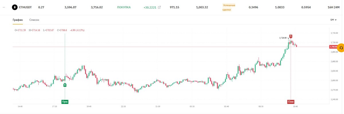 - Корректировка открытой позиции (уменьшение/увеличение маржи, изменение плеча).