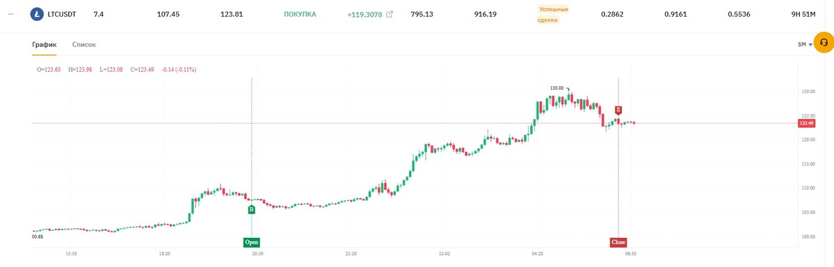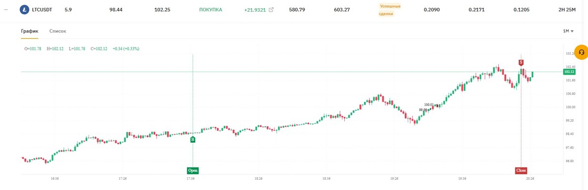 - Настройка позиции (лот, выбор маржи, цена ликвидации).